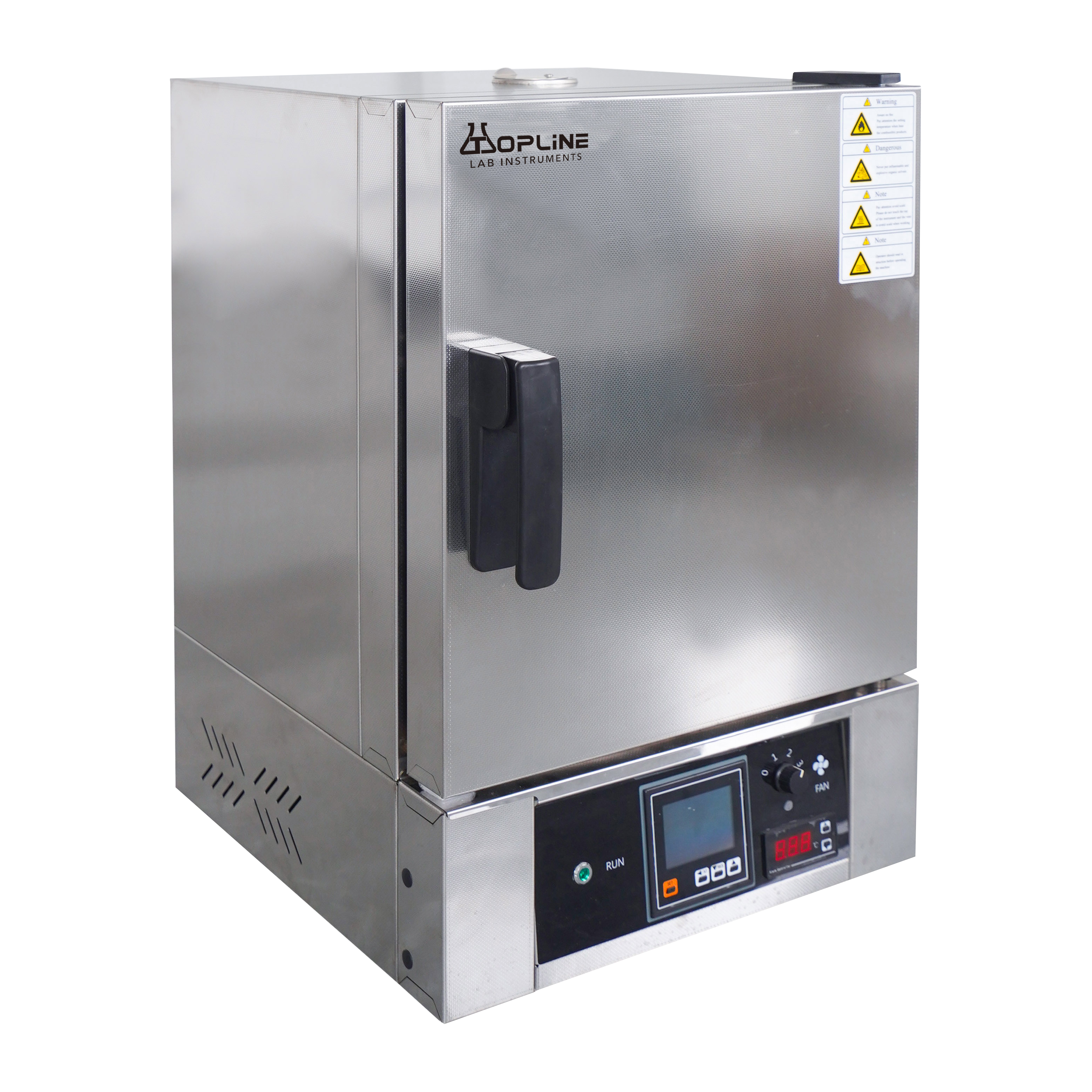 In the workroom,the hot air is convective naturally and cyclically. PID mic-computer intelligent temperature controller with functions of over-temperature protection. Standard highlight LED instrument running light. New anti-hot handle. LCD temperatu